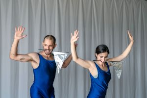 Yotam Peled, born in 1989, is a choreographer and performer with a background in visual arts, athletics, and capoeira. He began dancing at 21 and later studied contemporary circus. Since 2015, he has been based in Berlin, working internationally as a freelance artist and leading the ensemble Yotam Peled & the Free Radicals. Nitzan Moshe, born in 1994, began her dance training at a young age, and accomplished a one-year internship in Bat-Sheva Ensemble. She worked in Vertigo Dance company, and as a freelancer with makers such as Roy Assaf, Sita Ostheimer, and company Idem. In 2019 she relocated to Berlin and began her collaboration with Yotam Peled, first as a dancer and recently as a co-choreographer.