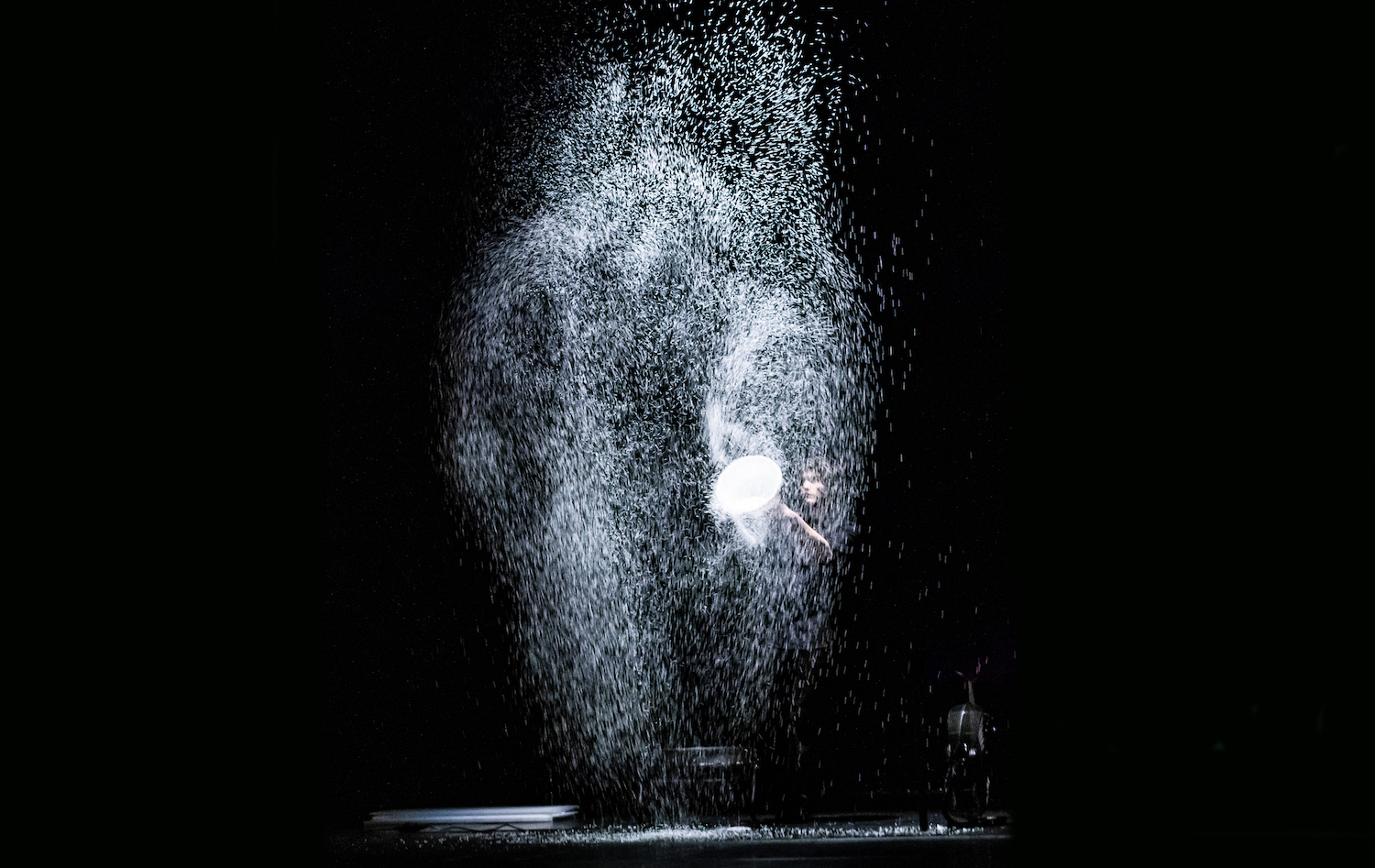 Materia opens a stunning world in which seemingly insignificant everyday materials become breathing organisms. From the very first moment, floating spheres and dancing sheets of polystyrene draw the audience into a vortex of lightness and quiet tension.